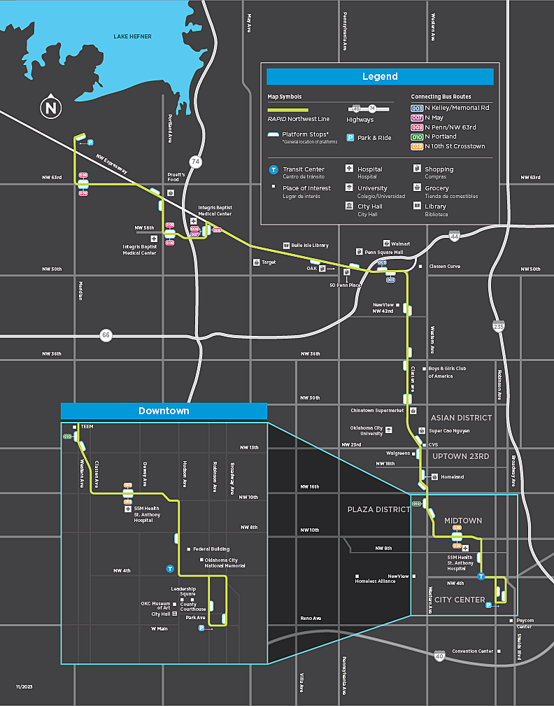 RAPID runs 9.5 miles each way traversing NW Expressway, Classen, and Downtown - potentially reaching 40,000 residents and 91,000 jobs in the local workforce.